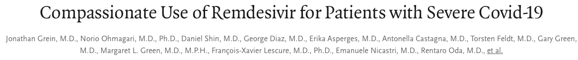 10 avril : L'étude de Gilead Sciences Inc. publiée dans le NEJM sur l' »usage compassionnel du remdesivir ».