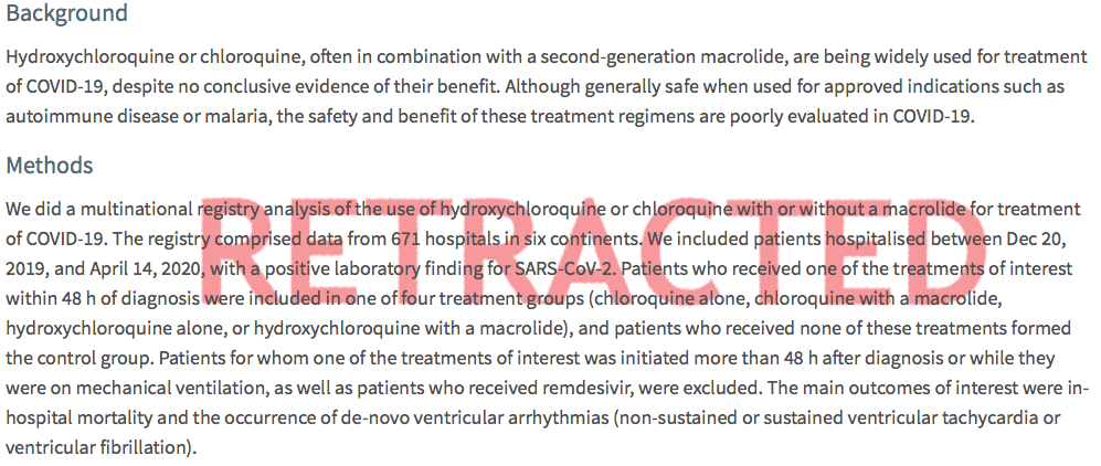Le 5 juin : Le (faux) rapport du Lancet (22 mai) sur la HCQ est rétracté.