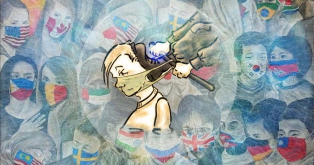 Ainsi, le masque devient une espèce de "rite d'initiation" de masse à un nouveau paradigme social complètement construit, comme le furent l'État, les institutions, le commerce, l'argent et les modes de contrôle, au fil de l'histoire. Ces rites de passage existent depuis des millénaires et sont devenus courants dans les sociétés secrètes, dans l'armée qui n'est qu'un gigantesque rite d'obéissance et de soumission à tout un système.