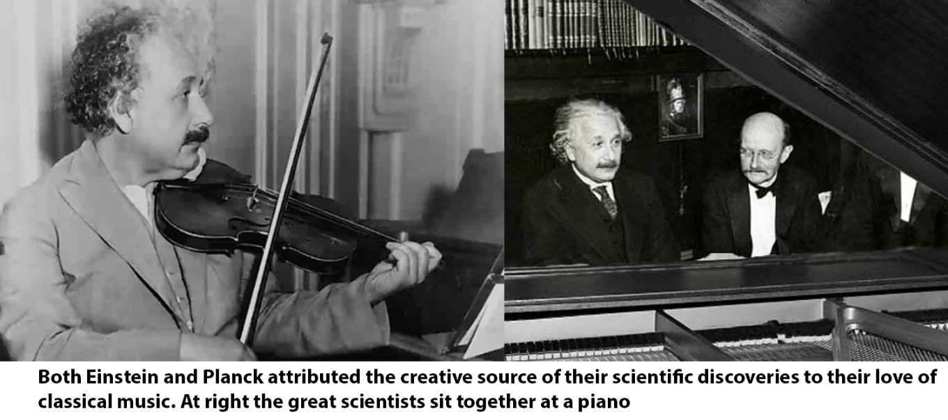 While Planck was an accomplished pianist, Einstein spoke relentlessly on the importance of his soul's adherence to classical music and his love of playing Mozart on his violin. Both men played music together frequently, and both testified to the vital role of classical music's performance in allowing them to leap beyond the constraints of logical deductive/inductive reasoning (aka: formal mathematics) which had prevented them from formulating fruitful hypotheses.