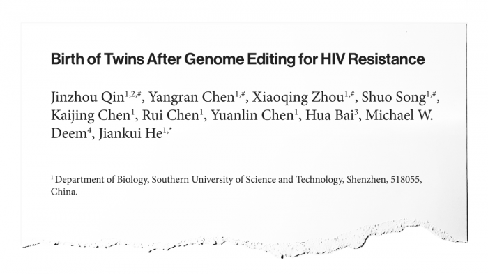 Aujourd'hui, le MIT Technology Review rapporte pour la première fois des extraits du manuscrit non publié He sur la création des jumeaux. Vous pouvez lire ces extraits ici technologyreview.com, ainsi que les commentaires d'experts médicaux et juridiques sur les raisons pour lesquelles ils pensent que la recherche de He était gravement défectueuse. Dans un autre article, Kiran Musunuru, spécialiste de l'édition de gènes à l'Université de Pennsylvanie, soutient que ces failles sont précisément la raison pour laquelle le contenu de l'article He doit être rendu public.