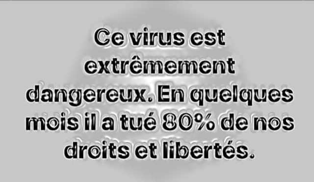 La folie a atteint le point où dans certains pays : des plages ont été désinfectées avec de l'eau de javel, des pompiers moustachus et barbus interdits de travail, des plexiglas ont été installés partout (même dans les classes des écoles) comme si c'était la peste noire, un train a été arrêté parce qu'une personne ne portait pas le masque, des familles privées de voir leurs morts (comme si le virus allait sauter du corps et les mordre), des septuagénaires verbalisées pour être sorties jeter les poubelles et même des pièces de monnaie et des billets de banque provenant de l'étranger ont été « isolés » !