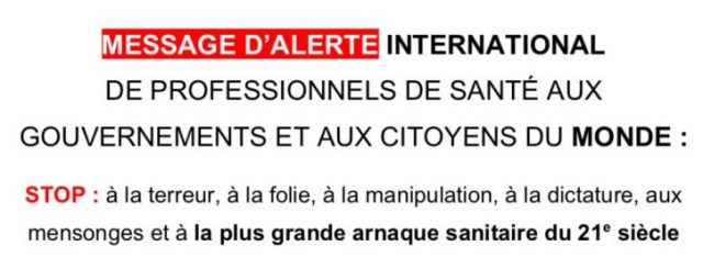 24. Nous invitons les professionnels de santé du MONDE ENTIER à être forts et courageux et à faire leur devoir de dire la vérité, à nous rejoindre MASSIVEMENT dans le collectif : United Health Professionnals et à signer cette lettre en envoyant les 4 informations suivantes : prénom, nom, profession et pays à : email protected