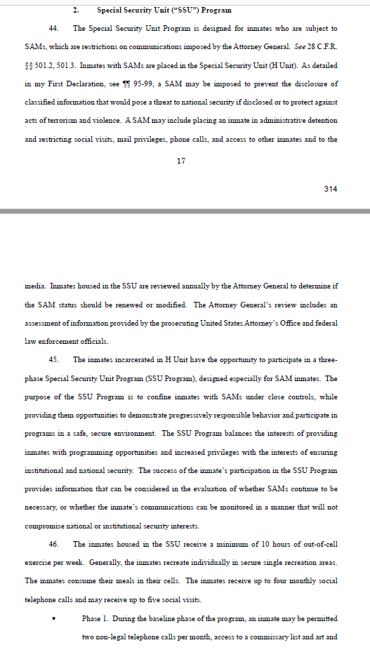 Lewis a été malhonnête car il sait, et l'accusation l'a reconnu, que si Julian était condamné, il serait très probablement maintenu dans le bloc H à l'ADX (« maximum administratif ») sous « mesures administratives spéciales ». S'il avait lu quelques paragraphes de la déclaration sous serment de Kromberg, il serait arrivé au régime sous lequel Julian serait en fait détenu :
