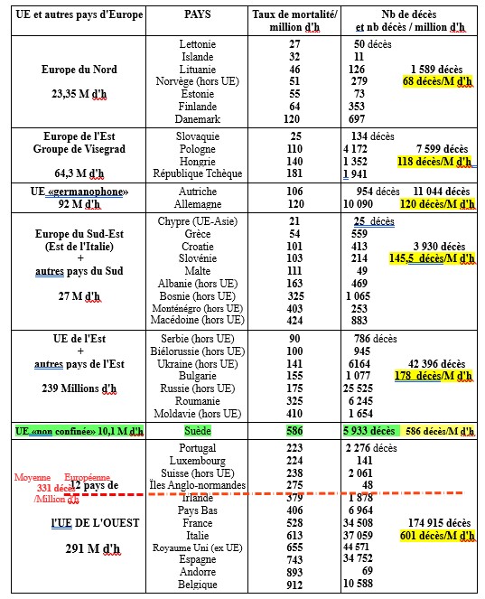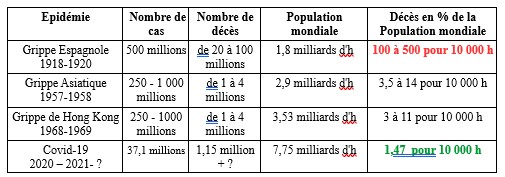 Rappel: taux de mortalité Covid mondial: 147,4 décès / Millions d'h (et européen 331 décès/M d'h)