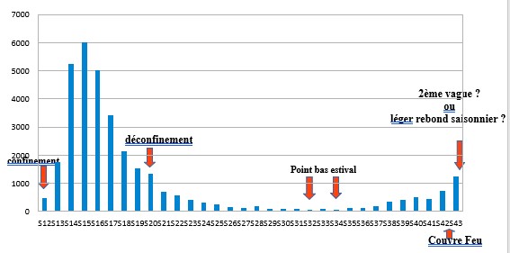 La situation de la France se détériore aussi. Son nombre hebdomadaire de nouveaux cas explose (+ 206 305). Mais le nombre de nouveaux cas n'est pas déterminant pour caractériser la létalité d'une épidémie. Détecter des dizaines de milliers de porteurs sains, voire de faux positif n'est intéressant que pour cerner le périmètre de l'épidémie, et éviter ainsi, par des mesures ciblées, une propagation trop importante. Les deux indicateurs les plus pertinents sont le nombre de cas critiques qui est en hausse (+ 641 en une semaine) et le nombre de décès: 1 205 sur la semaine (+ 485 par rapport au nombre de la semaine dernière).