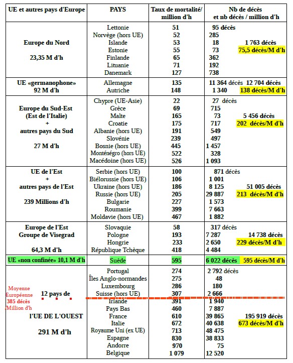 Rappel: taux de mortalité Covid mondial: 160,1 décès / Millions d'h (et européen 385 décès/M d'h)