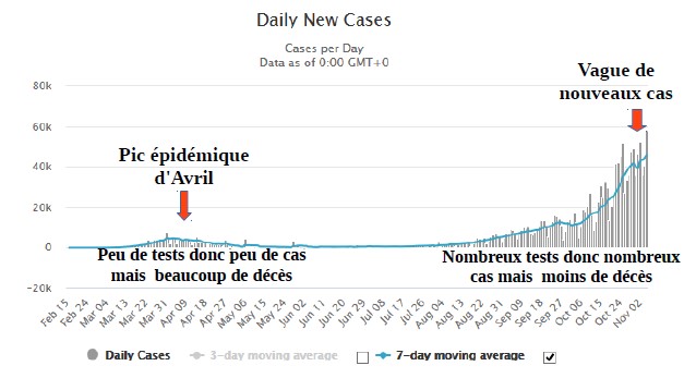 Comme pour l'épisode de mars-avril, lorsque une bonne organisation du pays et les moyens hospitaliers sont là, lorsqu'une gouvernance clairvoyante dirige dans la sérénité et sait mériter la confiance et l'adhésion de sa population, en décentralisant l'action, en déléguant et en communiquant dans la franchise sans chercher à instiller la peur, lorsque les médias n'en rajoutent pas «une louche» pour hystériser les politiques et le petit peuple, la gestion de l'épidémie se passe bien et les pertes sont limitées, voire très limitée (Pays nordiques, Allemagne, Grèce,...). Les choses se passent moins bien lorsque l'un ou plusieurs de ces facteurs ne sont pas au rendez-vous. C'est particulièrement le cas en UE de l'Ouest, et surtout en France, où les taux de mortalité sont beaucoup plus élevés qu'ailleurs.....