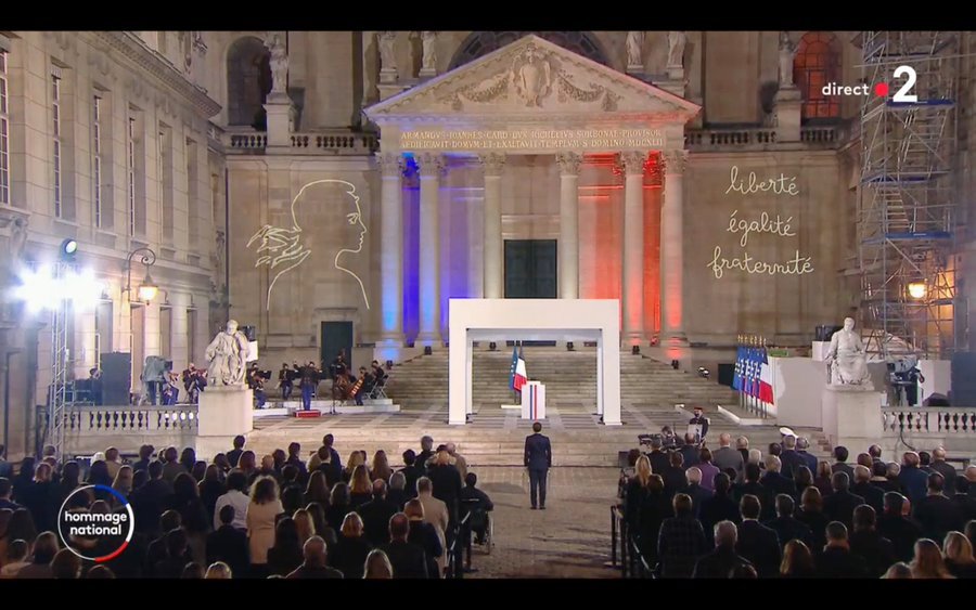 En République « française », comme dans les contes pour enfants et les blockbusters hollywoodiens, il y a pas de demi mesure. Soit on est très très méchant et on est dénoncé comme l'incarnation du mal, soit on est très très gentil et on est présenté comme l'incarnation du bien. Que l'on soit mort ou vif, il est impossible d'y échapper. C'est ainsi qu'en même temps qu'une chasse aux sorcières était déclenchée contre LFI et Jean-Luc Mélenchon, aucun fidèle n'oubliant de lancer sa pierre dans la figure diabolique désignée à la lapidation, le président Macron revêtait solennellement sa tunique de grand prêtre pour mener tambour battant la cérémonie de canonisation du malheureux professeur, au milieu d'une pluie d'hommages.