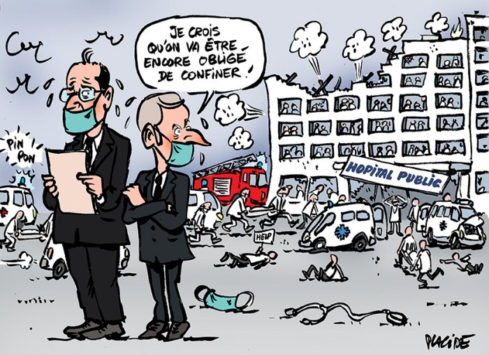 De fait Macron mène une politique sanitaire quasi-monarchique. Les mesures intrusives relatives au confinement ou au couvre-feu sont prises au sein d'un « Conseil de défense » où siègent quelques ministres, hauts fonctionnaires et officiers, et où le Parlement n'a aucun droit à la parole ni pouvoir de décision « Une poignée de gens décident dans le secret si le pays doit ou non être enfermé, et cela sans aucun contrôle », dit Chloé Morin. Et pour couronner le tout, un président de 42 ans annonce sa décision au journal de 20 heures, sans tolérer aucune question. L'état d'urgence sanitaire est décrété pour 5 mois et accorde au gouvernement de telles compétences que même la Ligue des droits de l'homme (LDH), une ONG qui a obtenu de nombreux succès juridiques en matière de droits citoyens, dit aujourd'hui qu'elle « ne peut pas entreprendre d'actions juridiques contre le confinement, car l'état d'urgence justifie tout. »
