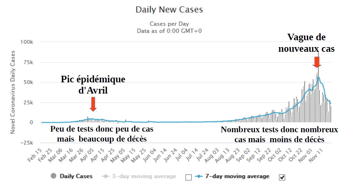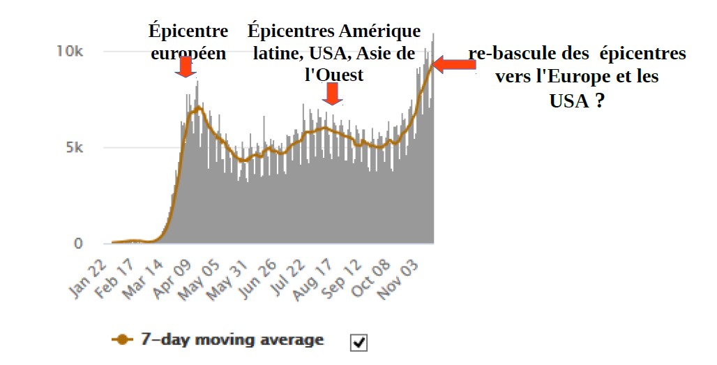 Second pic épidémique planétaire 2020 franchi en 2ème quinzaine de novembre: l'hémisphère nord est le plus touché. Résumé de la situation:
