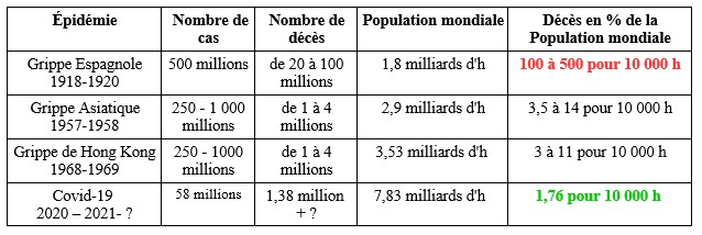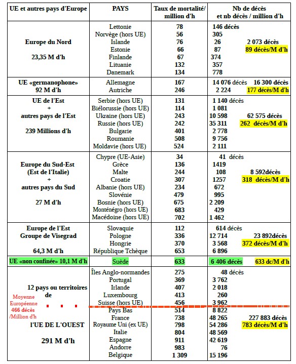 Rappel: taux de mortalité Covid mondial: 176,6 décès / Millions d'h et européen 466 décès/M d'h