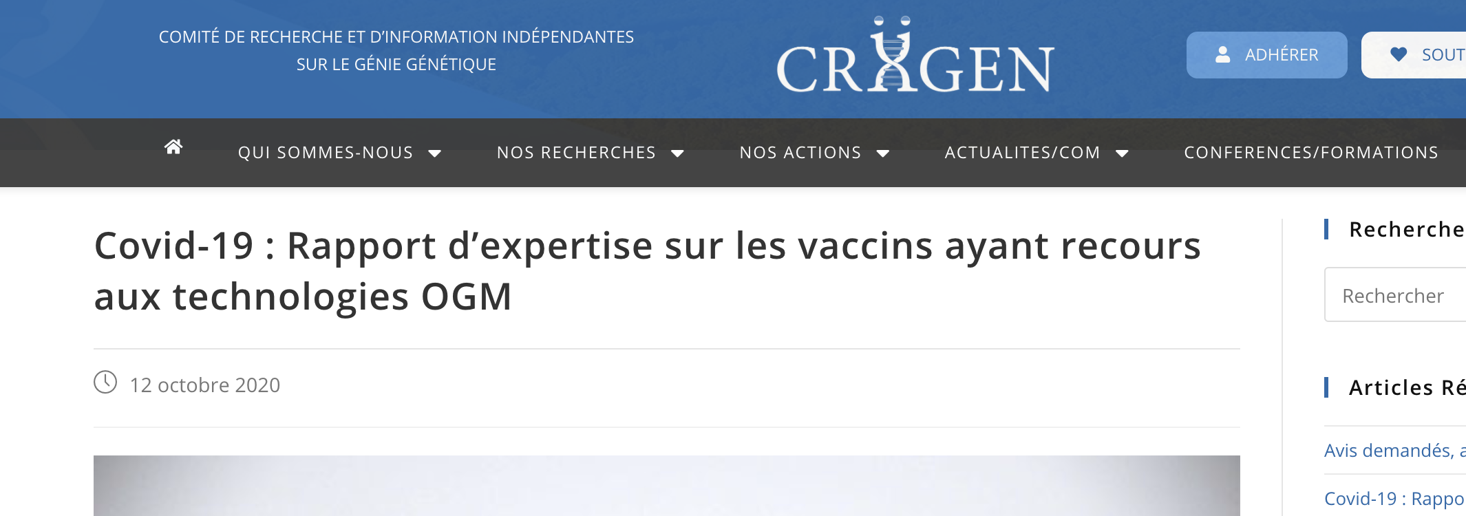 (20) NOTE D'EXPERTISE GRAND PUBLIC SUR LES VACCINS AYANT RECOURS AUX TECHNOLOGIES OGM Septembre 2020 Dr Christian VELOT criigen.org