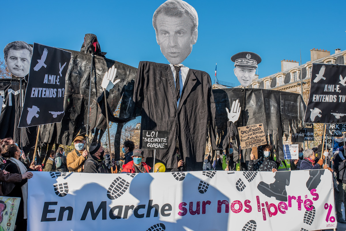 « Floutage de gueule » ou encore « Non à la toute puissance policière ». Samedi 28 novembre, des centaines de milliers de personnes ont défilé à Paris et dans toute la France pour dire non à la loi dite de « sécurité globale », qui porte gravement atteinte à la liberté d'informer. Les organisateurs ont annoncé 500.000 participants dans une centaine de villes. Le ministère de l'Intérieur fait état de 46.000 manifestants à Paris et 133.000 dans toute la France.