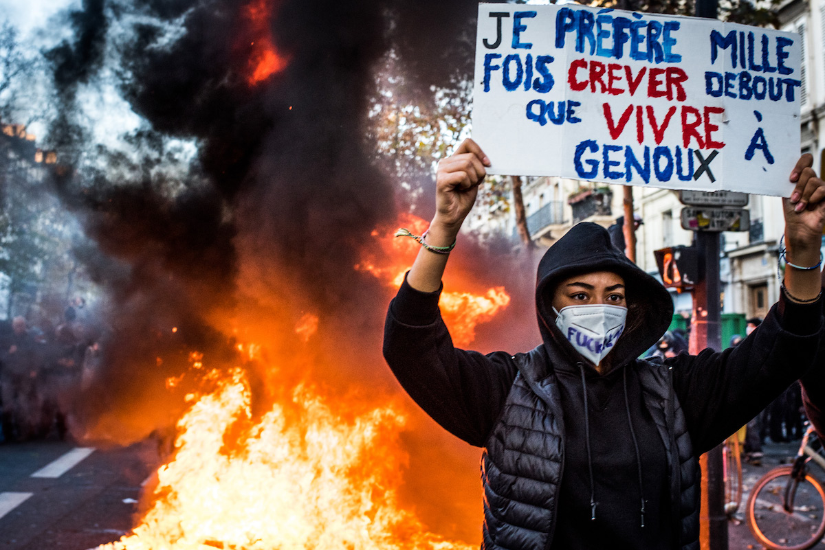 Samedi 28 novembre, des centaines de milliers de personnes ont défilé dans toute la France pour les « marches des libertés ». Des mobilisations contre la proposition de loi dite de « sécurité globale » mais surtout, contre les violences policières. Retour en images dans le cortège parisien.