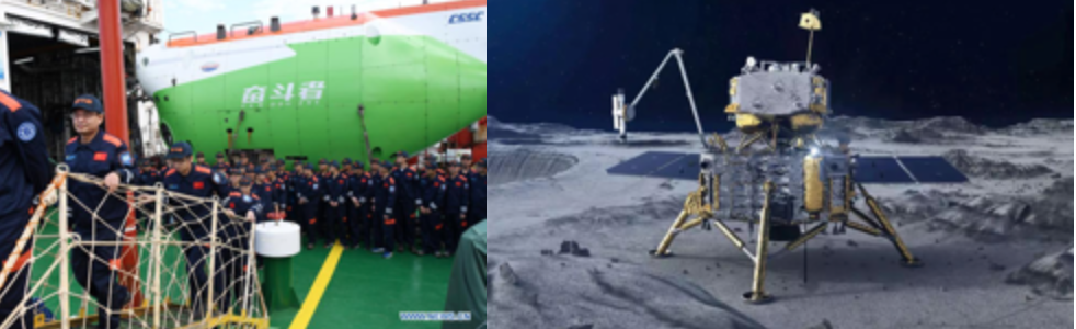 Alors que Pékin continue d'améliorer un système éducatif de masse déjà très performant classé comme le plus productif au monde dans le domaine des sciences et techniques, le « rêve chinois » poursuit sa marche en avant d'un pas aussi rapide qu'assuré, avec l'exploration habitée des profondeurs océaniques extrêmes comme les missions spatiales les plus ambitieuses : depuis Fendouzhe encaissant sans broncher des pressions de 1,09 tonne au centimètre carré dans la fosse des Mariannes à la sonde chinoise Chang'e-5 forant la surface lunaire en vue de ramener de précieux échantillons de roche, une première mondiale depuis 1976 !