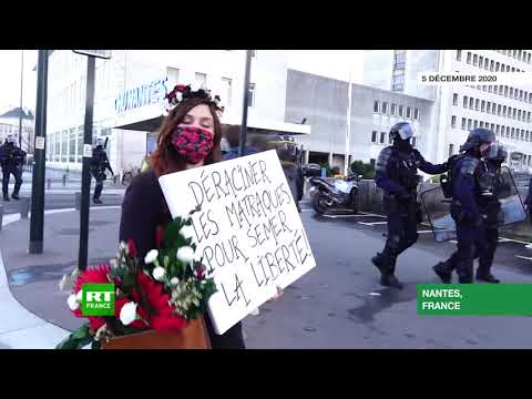 Le 5 décembre 2020, environ 5 000 manifestants sont descendus dans les rues de Nantes (Loire-Atlantique) pour protester contre la loi Sécurité globale. La police a utilisé des canons à eau pour les disperser.