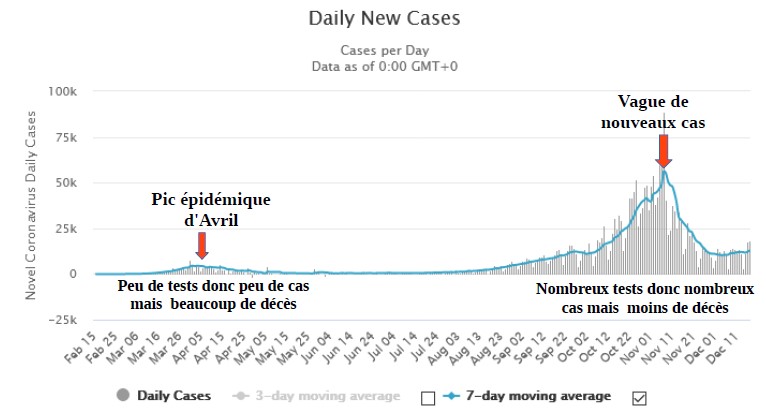 Pour le nombre des décès, la France a passé hier le cap des 60 500 décès. Elle pourrait franchir celui des 65 000 avant le 1er janvier 2021.