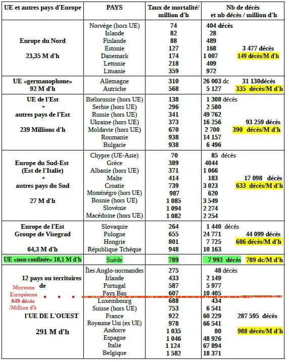 Rappel: taux de mortalité Covid mondial: 215,5 décès / Millions d'h et européen 649 décès/M d'h