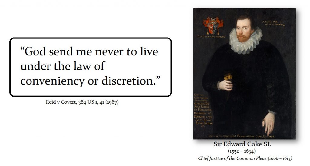 Par conséquent, n'importe qui peut voir à première vue que le Judiciary Act de 1925 est inconstitutionnel car il viole leur serment de défendre la constitution lorsqu'ils ont le pouvoir discrétionnaire de ne pas entendre les affaires. Auparavant, la Cour suprême avait statué et ignoré cette fois-ci lorsqu'elle définissait le «pouvoir discrétionnaire» en disant que le terme « discrétion » dénote l'absence d'une règle absolue». Langnes contre Green, 282 US 531, 541 (1931). Cela signifie que ceux qui sont au pouvoir ne doivent obéir à aucune loi, même à la Constitution. La Cour suprême a également déclaré: «il est évident que le pouvoir discrétionnaire n'existe pas là où il n'y a pas de pouvoir d'agir sauf d'une manière». Jones contre SEC, 298 US 1, 18 (1936). Lorsque les juges et les politiciens revendiquent la discrétion, ils prétendent être AU-DESSUS de la loi des hommes.