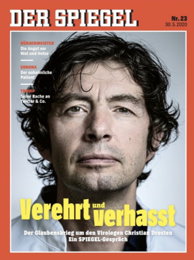 Christian Drosten, virologue allemand, est directeur de l'Institut de virologie de l'hôpital universitaire de la Charité de Berlin. Dans son édition du 30 Mai 2020, le magazine allemand Der Spiegel titrait qu'il est aujourd'hui l'homme le plus honoré et le plus haï d'Allemagne.