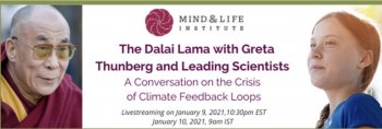 Le 9 janvier 2021, le dalaï-lama et Greta Thunberg se sont rencontrés pour un dialogue autour du thème de « l'urgence climatique ». La question était de savoir quelles actions mener alors que le réchauffement dû aux émissions de combustibles fossiles a déclenché les propres boucles de rétroaction de la nature et que celles-ci font grimper les températures de manière exponentielle.