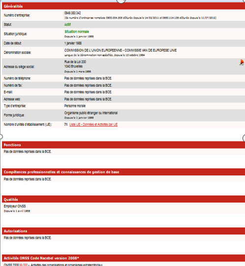 Annexe : Extrait de l'inscription de la Commission européenne au registre des entreprises belges.