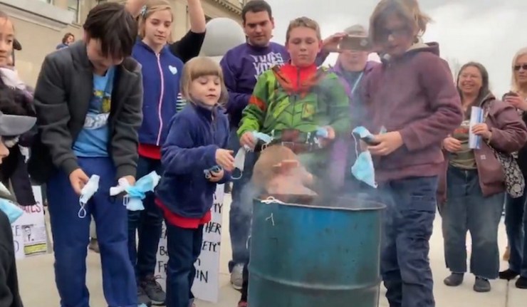 A mask burning rally in boise, Idaho