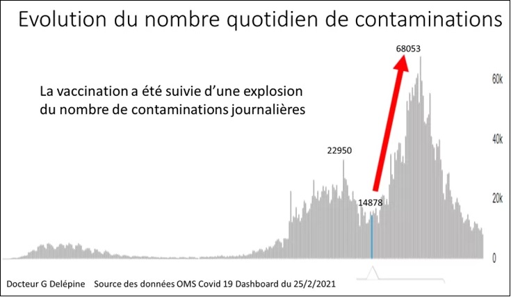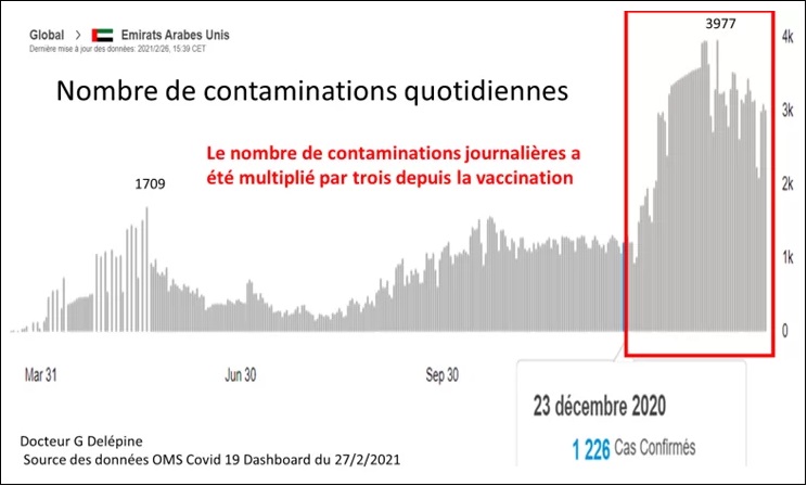 L'évolution précoce de l'épidémie après vaccination dans les 3 pays champions mondiaux de la vaccination (Israël, en Grande-Bretagne, Émirats Arabes Unis) suggère même que la vaccination pourrait faciliter (au moins transitoirement) les contaminations.