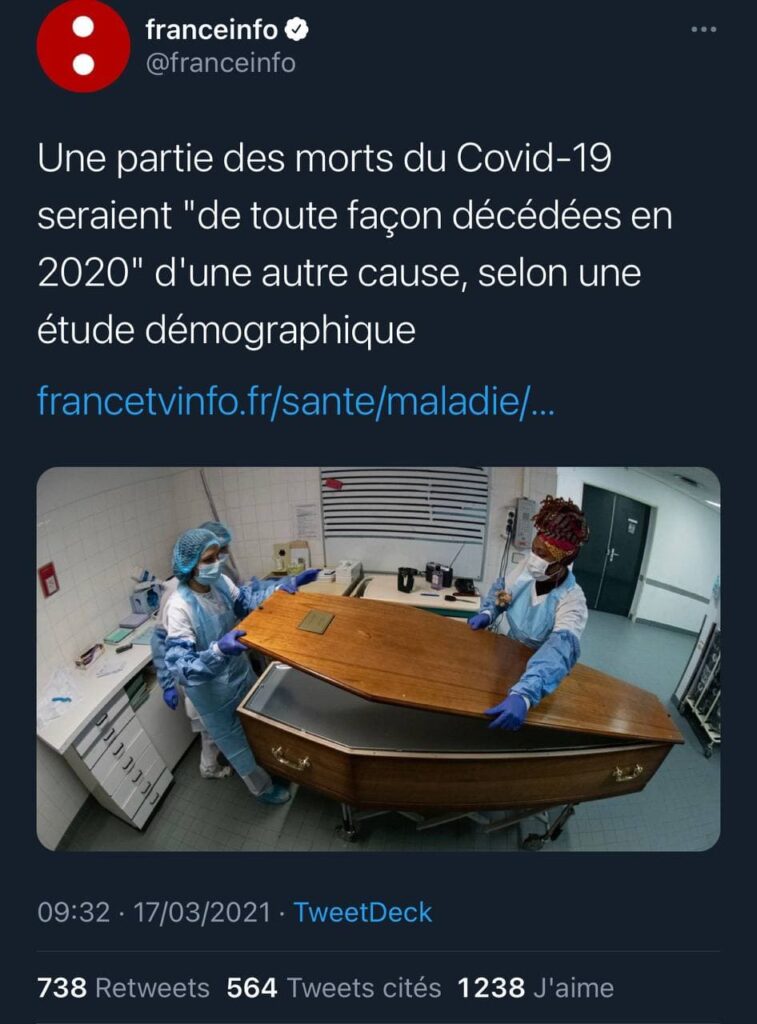 Mortalité en France : le coronavirus n'y aurait rien changé selon France Info ! Une thèse parmi d'autres !