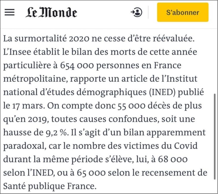 La mortalité « paradoxale » selon Le Monde : peut-être due au fait que les babies boomers arrivent massivement à un âge où l'espérance de vie diminue ?