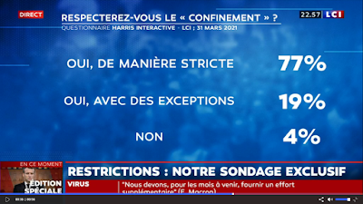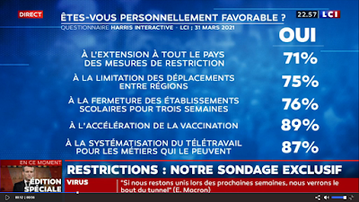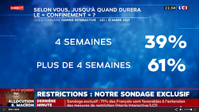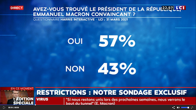 Bref, les Français sont enfermés dans un cycle de peur, qui les empêche de réfléchir, le premier but est atteint. D'ailleurs, les données publiées après l'allocution présidentielle veulent confirmer la soumission totale de la grande majorité de la population :