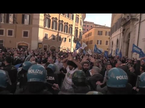 En scandant « Travail ! » et « Liberté ! », les manifestants de la Piazza Montecitorio ont exigé du gouvernement la réouverture immédiate des commerces...