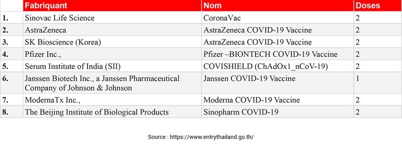 Il faut savoir que seules les vaccins enregistrés en Thaïlande ou certifiés par l'OMS seront reconnus dans le passeport vaccinal.