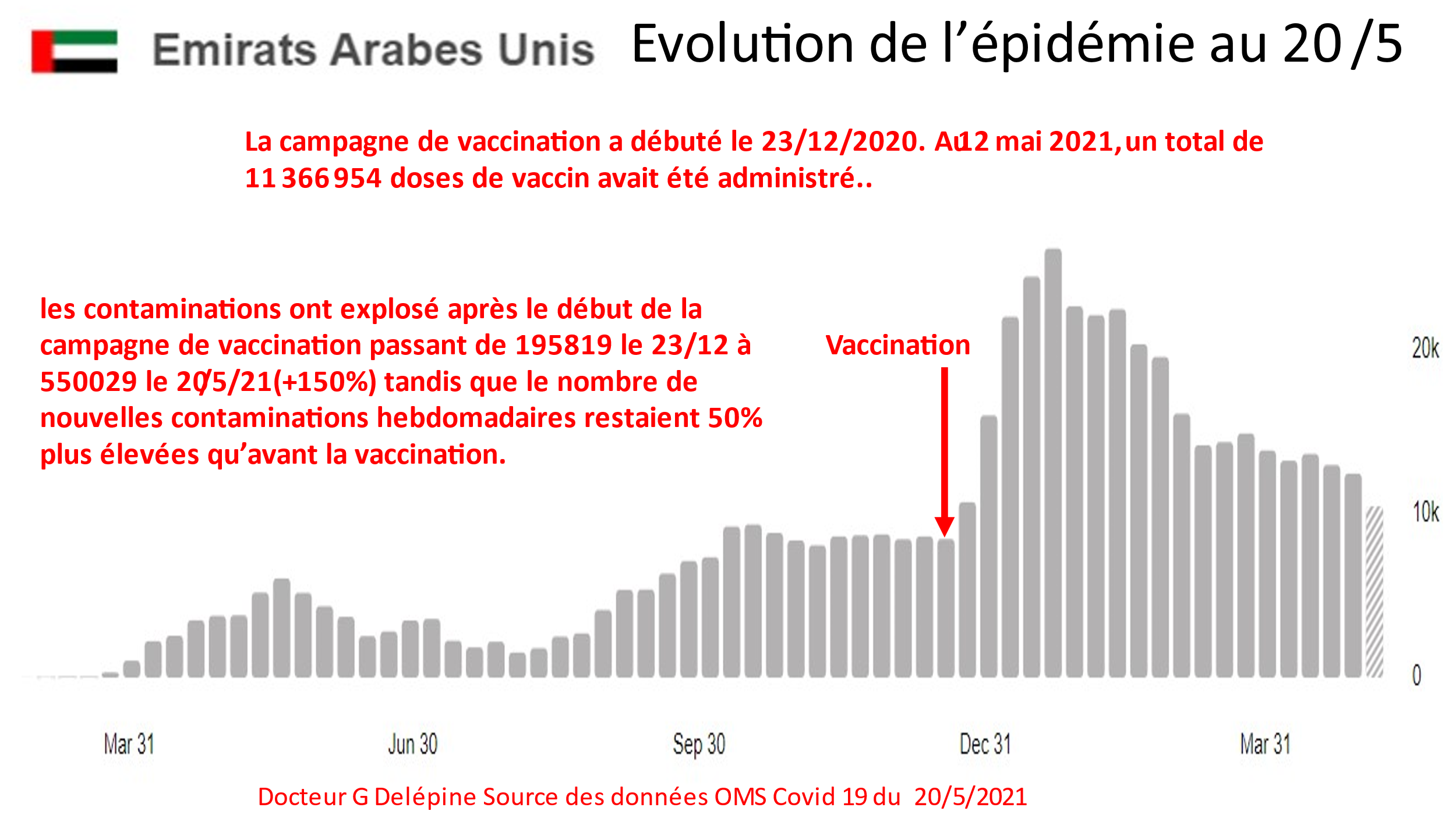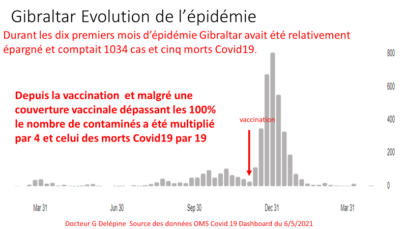 Quelques exemples les plus démonstratifs sont ceux des Seychelles, de l'île de Man, des Émirats Arabes Unis ou de Gibraltar, dont les courbes publiées par l'OMS 26_15226 montrent que l'épidémie a flambé malgré l'obtention d'une couverture vaccinale très élevée. 27_15226