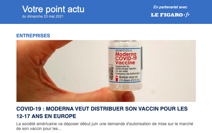 Ainsi, le ministère de la Santé a prévu de mettre à disposition des médecins de ville le vaccin Moderna à partir du 24 mai, sauf dans les départements qui sont les plus touchés par les variants sud-Africain ou brésilien ! Pourquoi ? Parce qu'ils savent bien que ce vaccin serait inopérant dans ces départements à cause de ces variants.