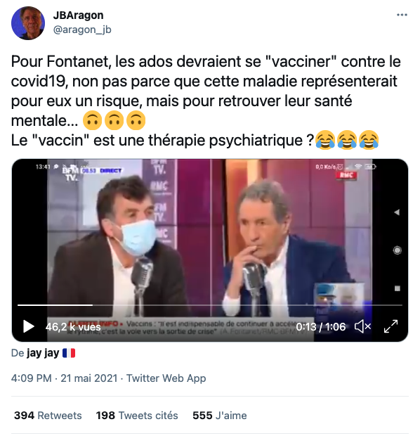 Même le COSV en est conscient, puisque dans son rapport, ils soulèvent la question de « l'acceptabilité de la vaccination des enfants dans un contexte de bénéfice individuel faible ». Ce qui ne les empêche pas de recommander une vaccination massive des enfants de plus de 12 ans à la rentrée de septembre.