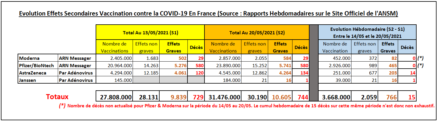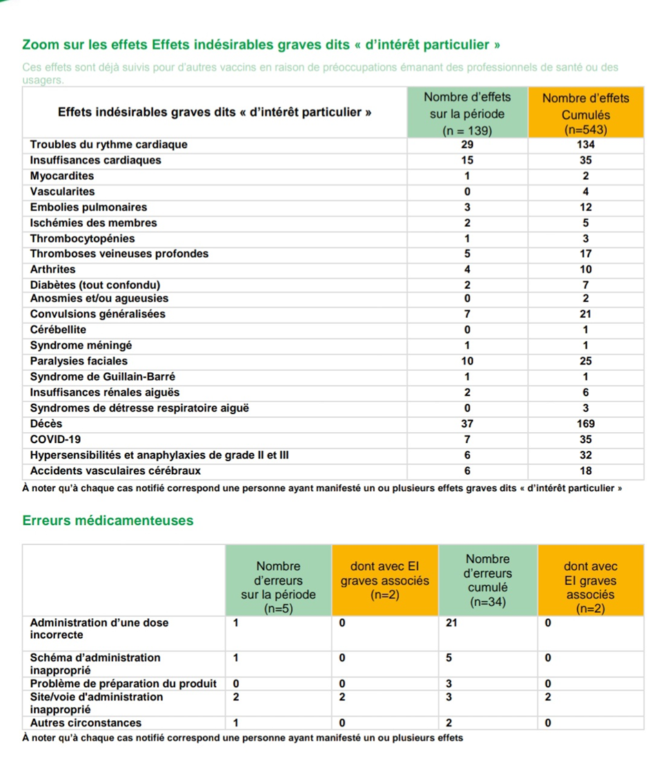 Le Site de l'ANSM est un peu difficile à consulter, car pour l'instant, il ne compte pas les décès en l'absence de certitudes de la relation de cause à effet.