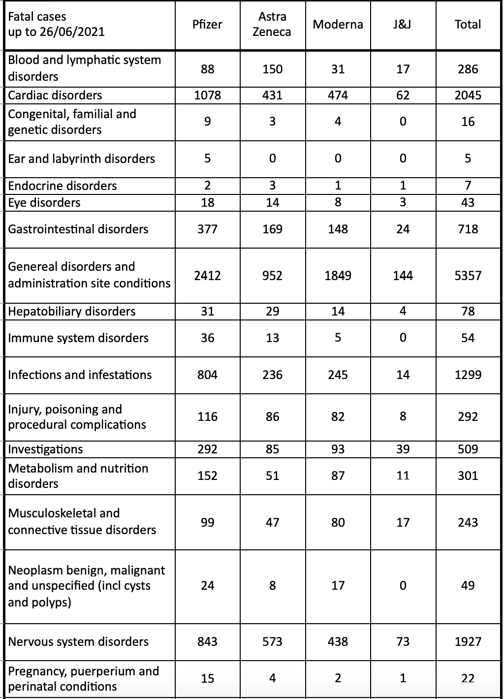 Les morts ne sont comptabilisés que durant les trente jours suivants la piqûre et les morts subites du deuxième mois sont volontairement oubliées. Quant aux accidents cardiaques fréquents, ils sont pour l'instant supposés être le fait de pure coïncidence et non comptabilisés. Gageons que les cardiologues vont faire fortune, l'injection génique source de fabrication de protéine Spike étant particulièrement toxique pour les vaisseaux et en particulier les vaisseaux usés des gens âgés qu'on s'est précipité à injecter.
