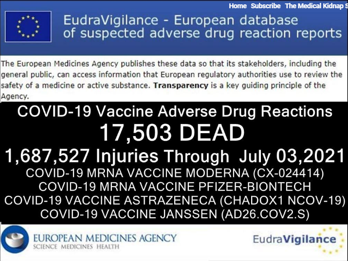 - 17 503 décès post vaccination signalés au 3 juillet dans la base européenne EudraVigilance