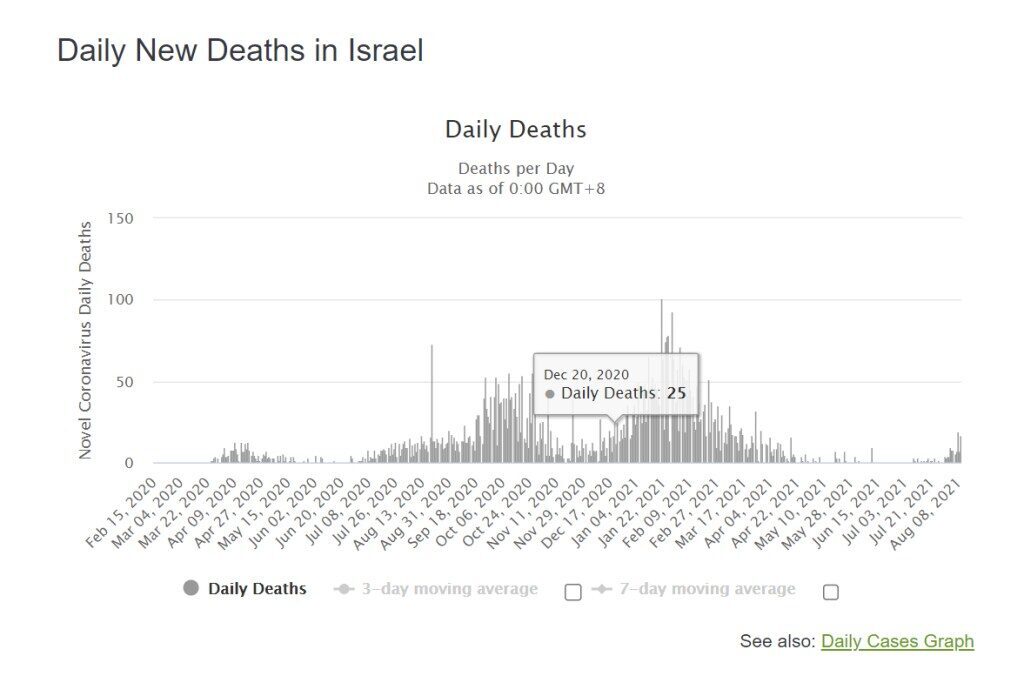 La mortalité en Israël du 20 décembre 2020 au 8 août 2021 :