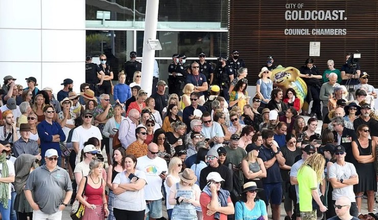 Un nouveau type de manifestations se développe en Australie, utilisant le silence, la police de Brisbane ne sait pas quoi faire du silence. Voyez l'officier à gauche se promener. Des révolutions pacifiques, voyons si c'est possible.