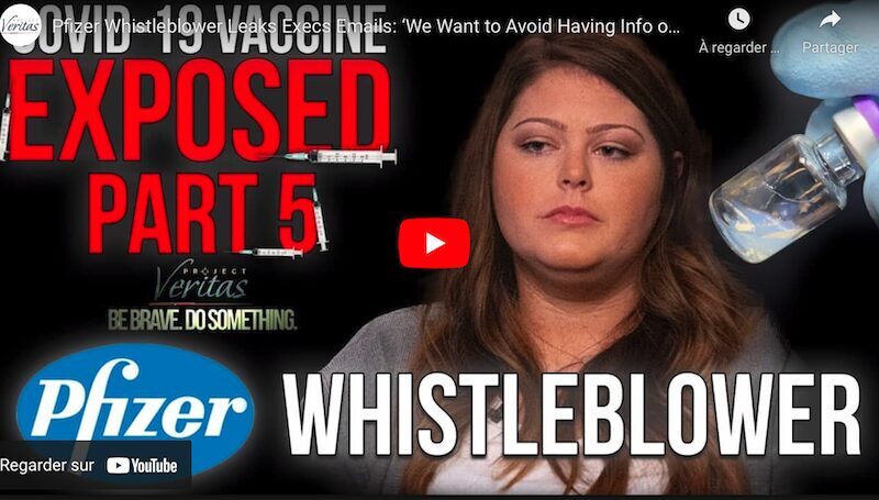 Cinquième vidéo de Project Veritas sur les vaccins. Une lanceuse d'alerte employée par Pfizer a divulgué une chaîne de courriels envoyés par des cadres de l'entreprise pour discuter de la meilleure façon de cacher au public des informations sur l'utilisation de lignées de cellules fœtales provenant de cellules de foetus (avortés) dans le développement du vaccin contre le COVID. Ce problème peut sembler lointain aux Européens mais aux États-Unis la querelle de l'avortement est centrale. Et Pfizer a menti aux Américains sur ce point comme sur d'autres.