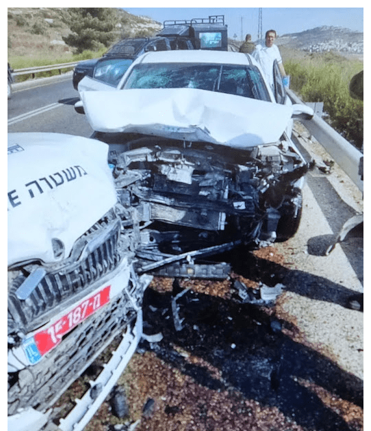 Selon une source, Awad n'a pas remarqué la voiture de police, et quand il a vu deux voitures devant lui ralentir, il les a croisées à grande vitesse et s'est écrasé contre l'avant du véhicule de police, qui se tenait sur la bretelle de gauche de la route à deux voies, mais était garé de sorte qu'il faisait saillie sur la voie. Un agent de sécurité de l'Autorité palestinienne qui est passé par là, mais ne s'est pas identifié, a raconté qu'un des policiers israéliens lui avait dit qu'il y avait eu un accident. Quand il s'est approché, un autre policier lui a dit qu'il s'agissait d'une attaque terroriste et lui a ordonné de partir.