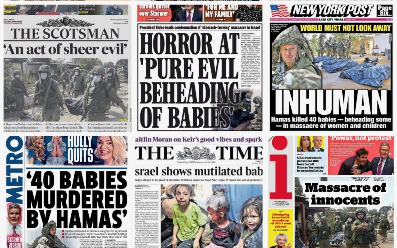 - la fiction selon laquelle 40 bébés auraient été décapités par les jihadistes du Hamas (la source initiale est le bureau du Premier ministre, créditée par le président des États-Unis Joe Biden).