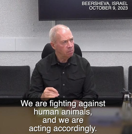 On dit à tout le monde de haïr le Hamas parce qu'on ne peut pas dire ouvertement «haïr les Palestiniens». Je veux dire que les Israéliens le font, ils disent ouvertement «Nous combattons des animaux humains et nous agissons en conséquence» (ministre de la guerre) et «ce sont des sauvages» ( Premier ministre). Pendant ce temps, les colonies génocidaires prospères (Europe, États-Unis, Canada, Australie) disent : «Bien sûr, du sang jeune, tout ce dont vous avez besoin, tout ce que vous voulez». Et je suis censé détester le Hamas, pourquoi ? Parce qu'ils sont sortis du ghetto qu'Israël est en train de liquider ?