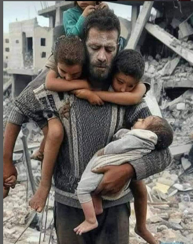 Cette photo, qu'elle soit prise sur le vif. Ou qu'elle soit mise en scène, est incontestablement l'expression de la tragédie qui accable Gaza*.
