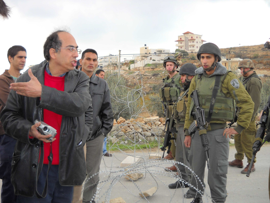Mazin Qumsiyeh, chrétien, résidant à Bethléem, souvent maltraité, arrêté, emprisonné par l'occupant, se défend