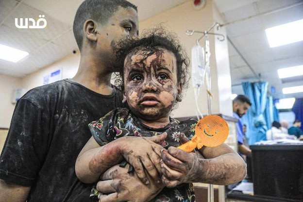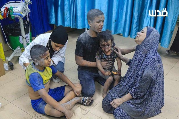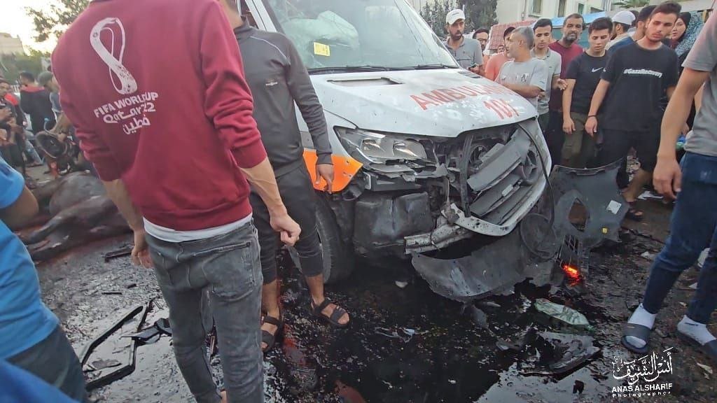 Frappes israéliennes devant l'hôpital Al Quds à #Gaza, faisant plusieurs victimes.