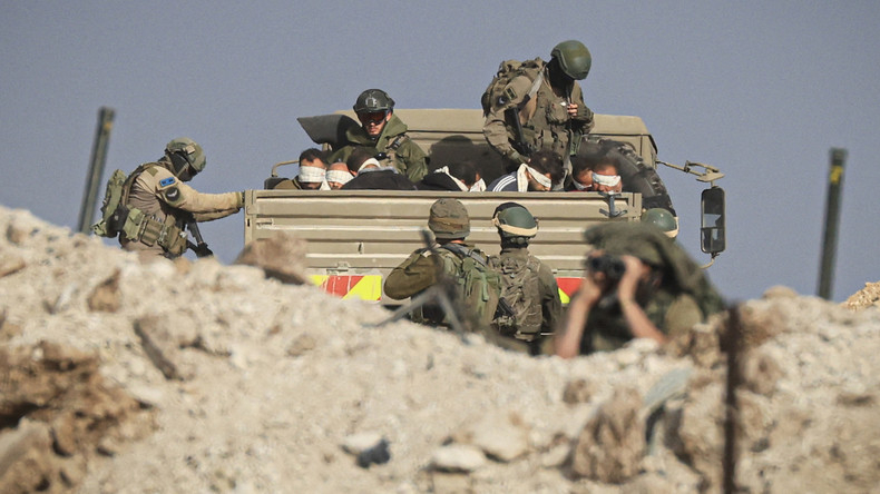 Militaires israéliens détenant des prisonniers dans un fourgon (image d'illustration).